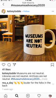 Earlier this month, I was able to share personal stories with our delegates in Richmond to connect them to specific issues impacting Virginia Museums. I have no doubt (and based on the social media posts, I'm sure I'm right) that our national museum advocates were equally successful. Please stop below to see some of the great post from museum professionals across the country! Remember, Museums are not Neutral!